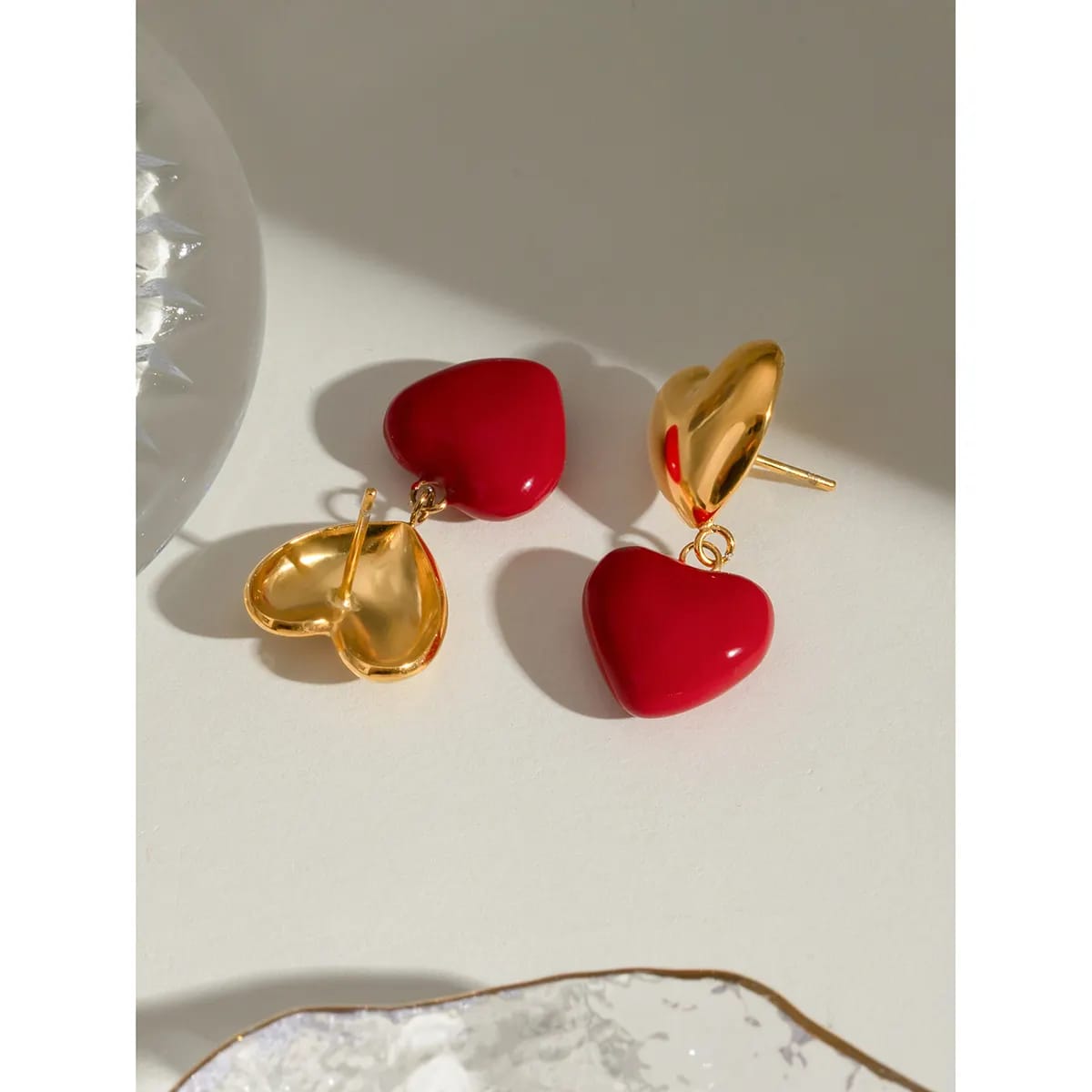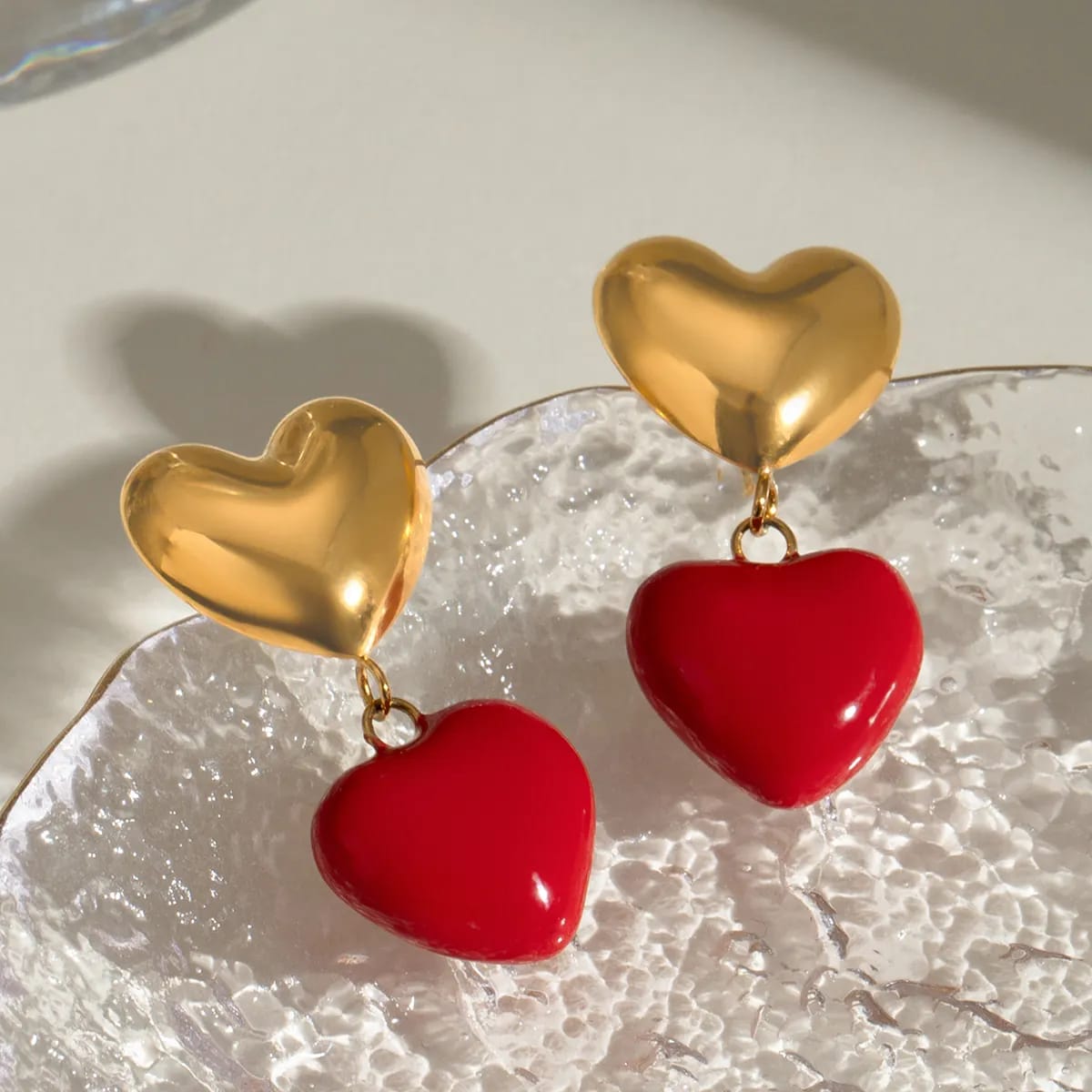 DESCRIPTION : Adorable heart-shaped earrings that bring a playful pop of charm to any look. Perfect for adding a touch of whimsy to your everyday style or making a sweet statement at special occasions. These delightful pieces celebrate love and personality with effortless elegance.