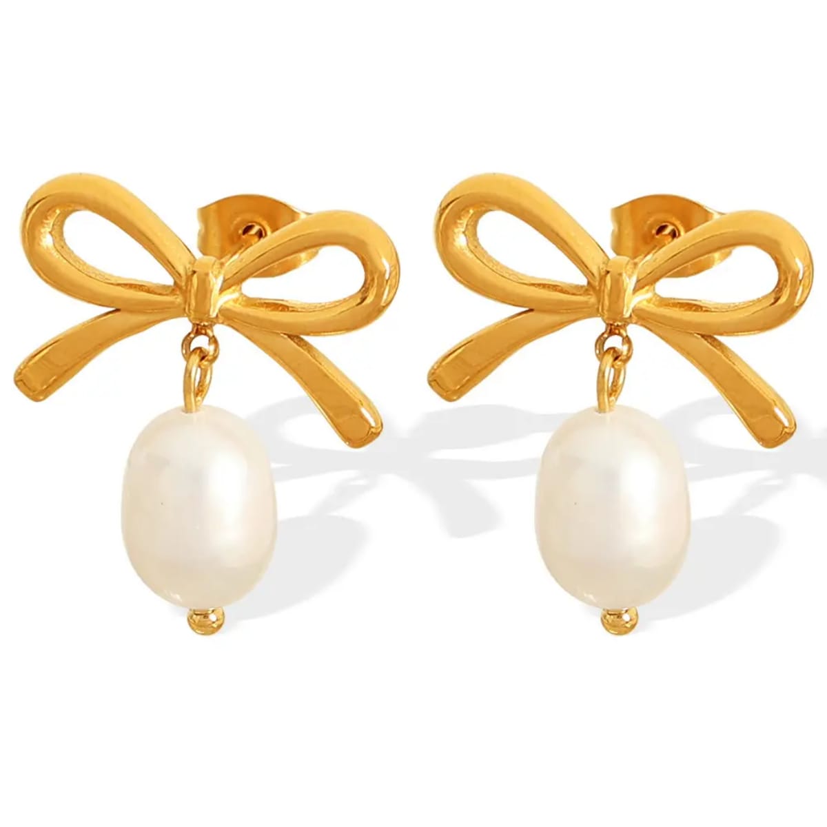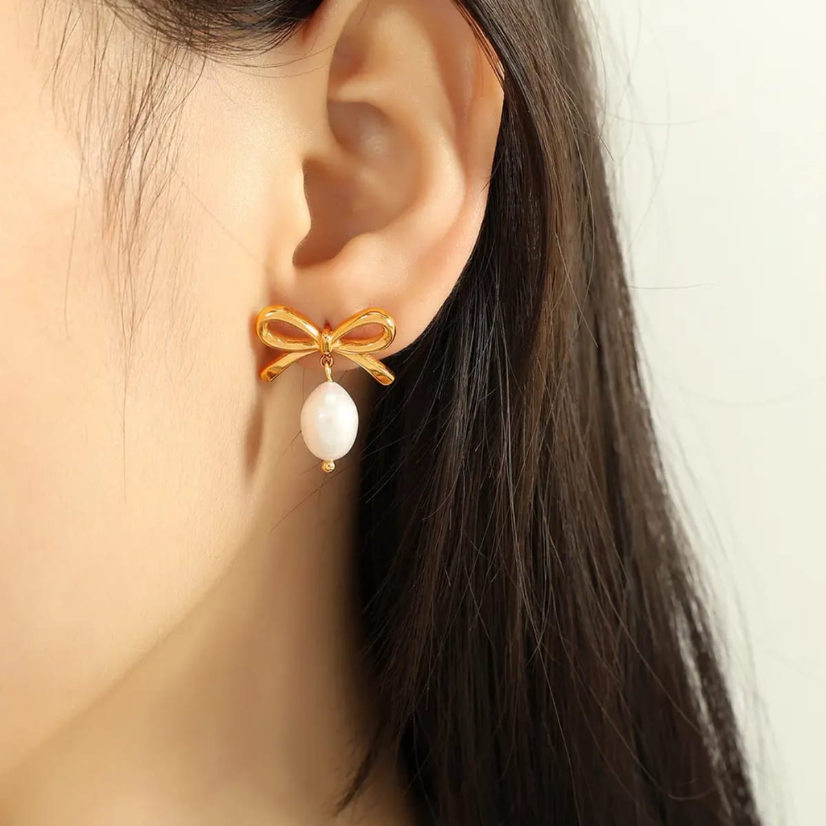 Elegance meets whimsy with these Pearl Bow Earrings—a delightful twist on timeless sophistication. Each pair features lustrous pearls nestled in charming bow settings, perfect for adding a touch of refined playfulness to any occasion. Whether you're dressing up for an evening out or elevating your everyday style, these earrings strike the ideal balance between classic and contemporary.
