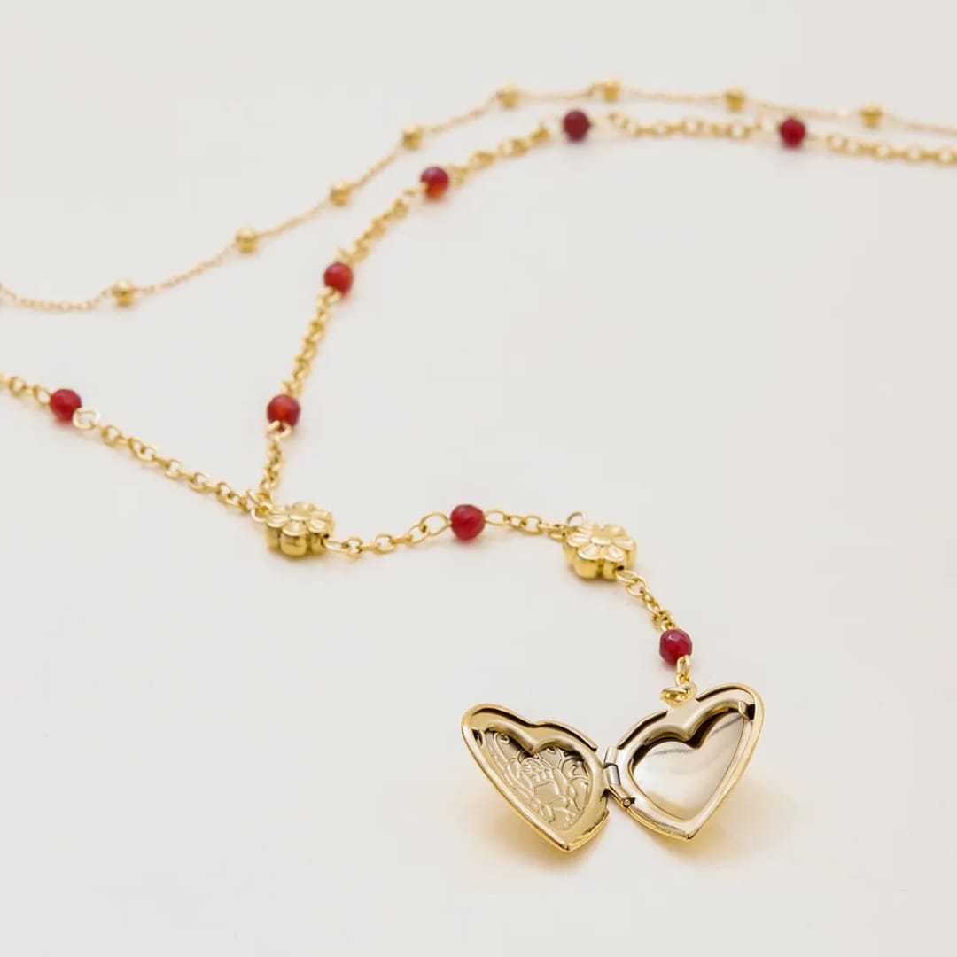DESCRIPTION : Crimson petals frozen in time—this Ruby Bloom Necklace captures nature's most romantic moment in gleaming detail. A playful twist on classic elegance, it's the perfect piece for those who dare to wear their passion close to their heart.