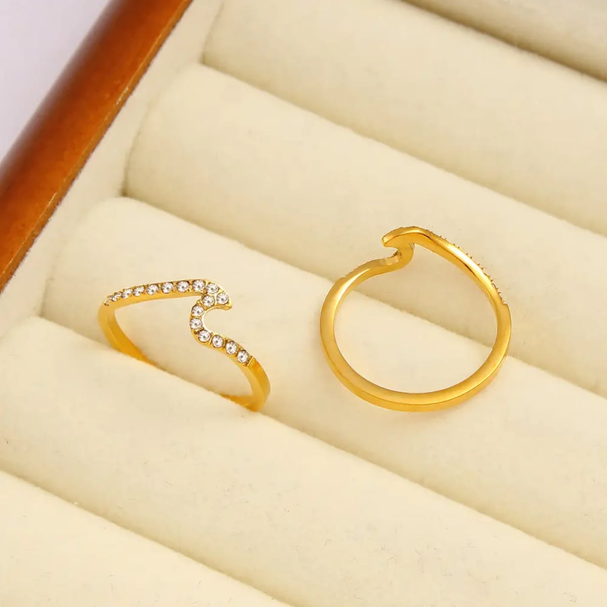 Catch the wave of elegance with the Wave Spark Ring—where fluid design meets radiant sparkle. This playful piece dances between sophistication and fun, perfect for those who refuse to choose between timeless style and a touch of whimsy. Let your fingers do the talking.