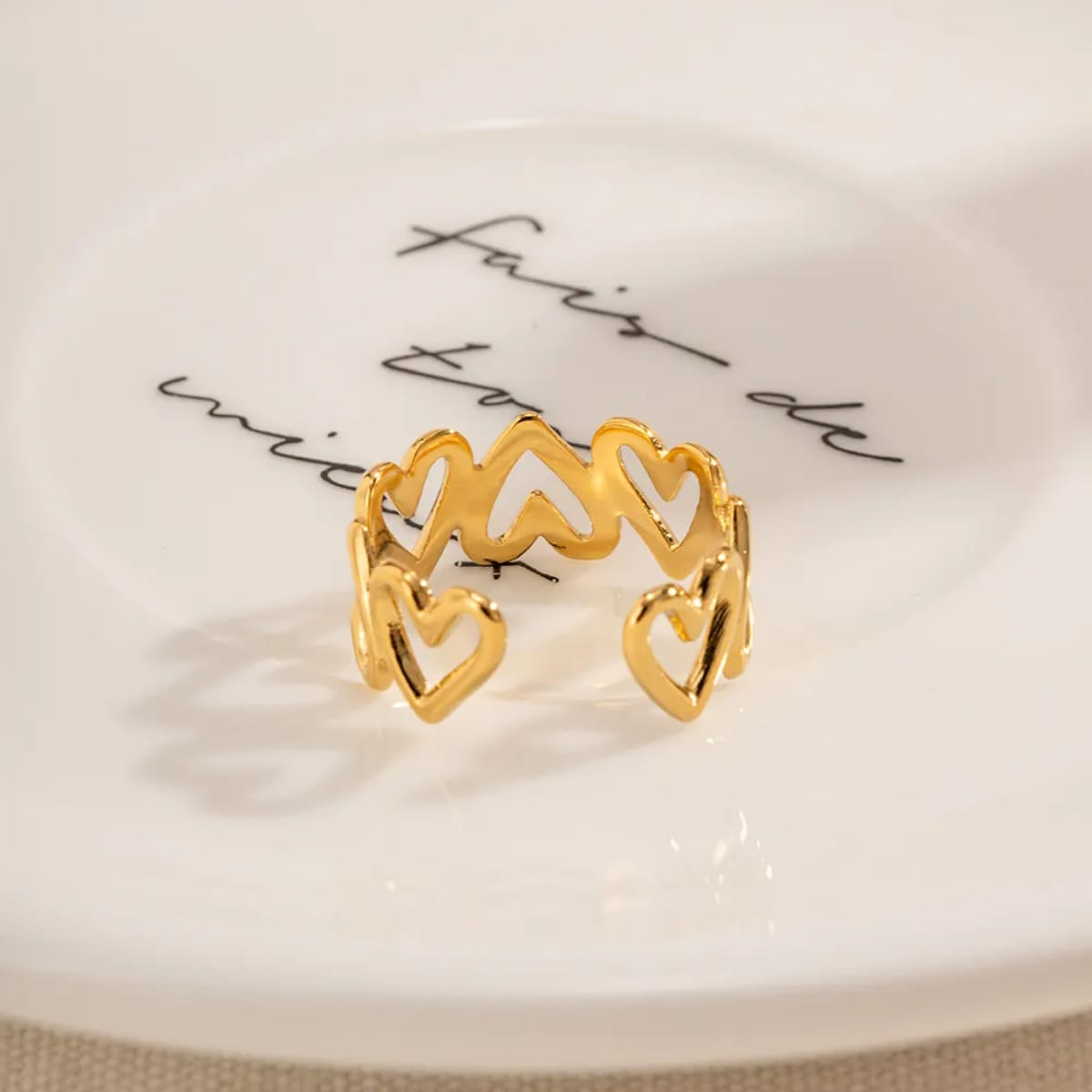 Elevate your everyday elegance with the Auréa Hearts Ring—where timeless romance meets modern sophistication. This charming piece features delicate heart motifs that whisper of affection and style, perfect for those who wear their hearts with grace. A playful yet refined addition to any jewelry collection.